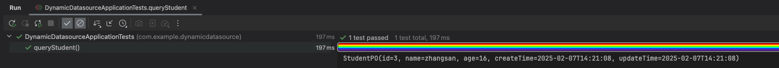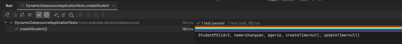 运行createStudent方法可以看到正常往test1库中的student表中插入了一条数据