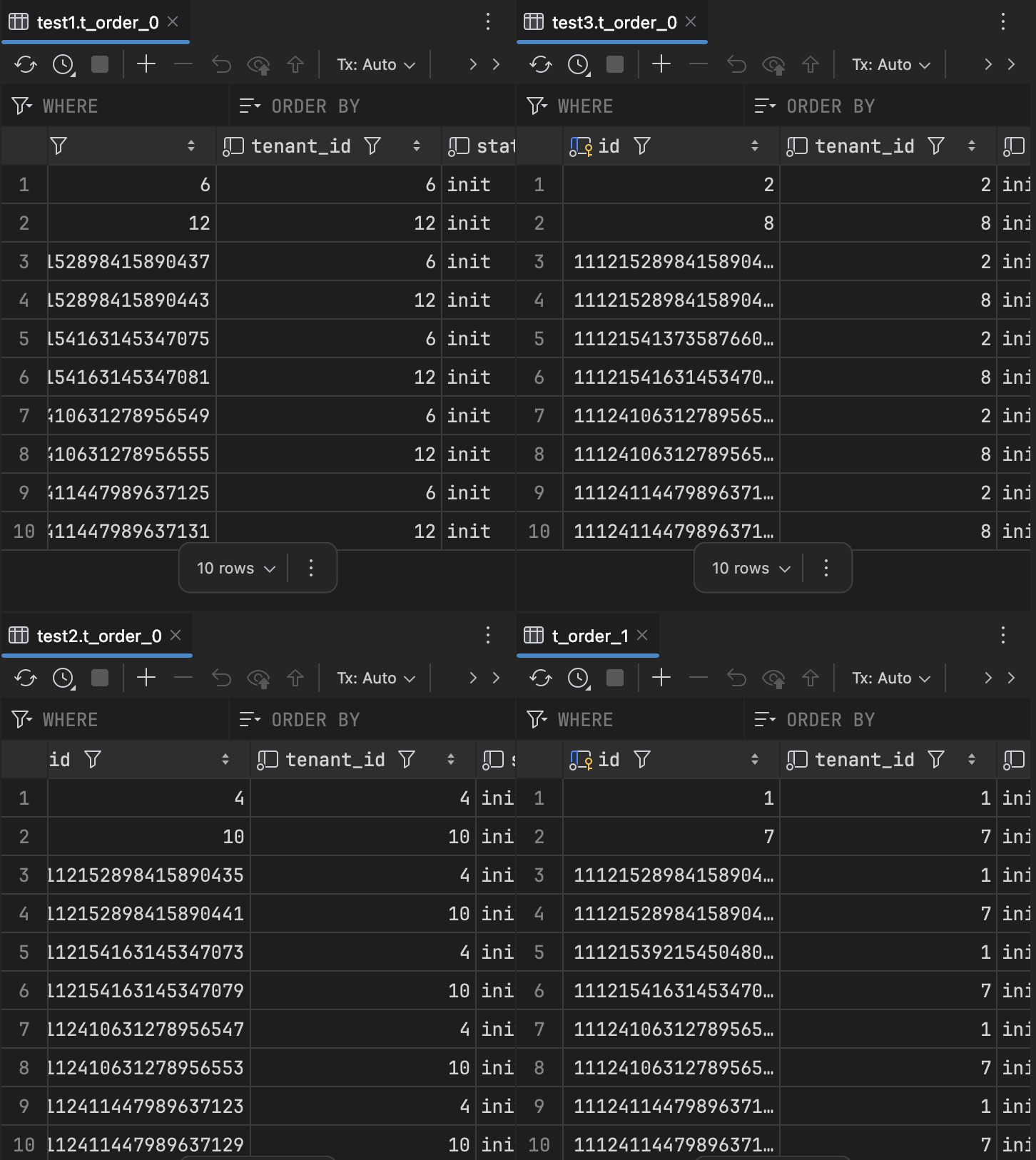 前面配置分库分表时,只进行了简单的分库分表算法,都是基于租户id的,不同表的主键id都是从1开始自增的。